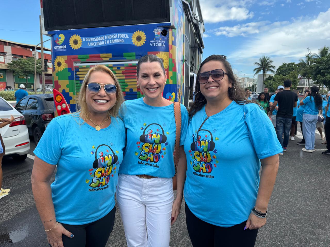 Na caminhada da Amaes, ontem, na Praia de Camburi, marcaram presença o governador do Estado, Renato Casagrande; o vice-governador, Ricardo Ferraço; e o prefeito de Vitória, Lorenzo Pazolini, e Pollyana Paraguassu, presidente da Amaes