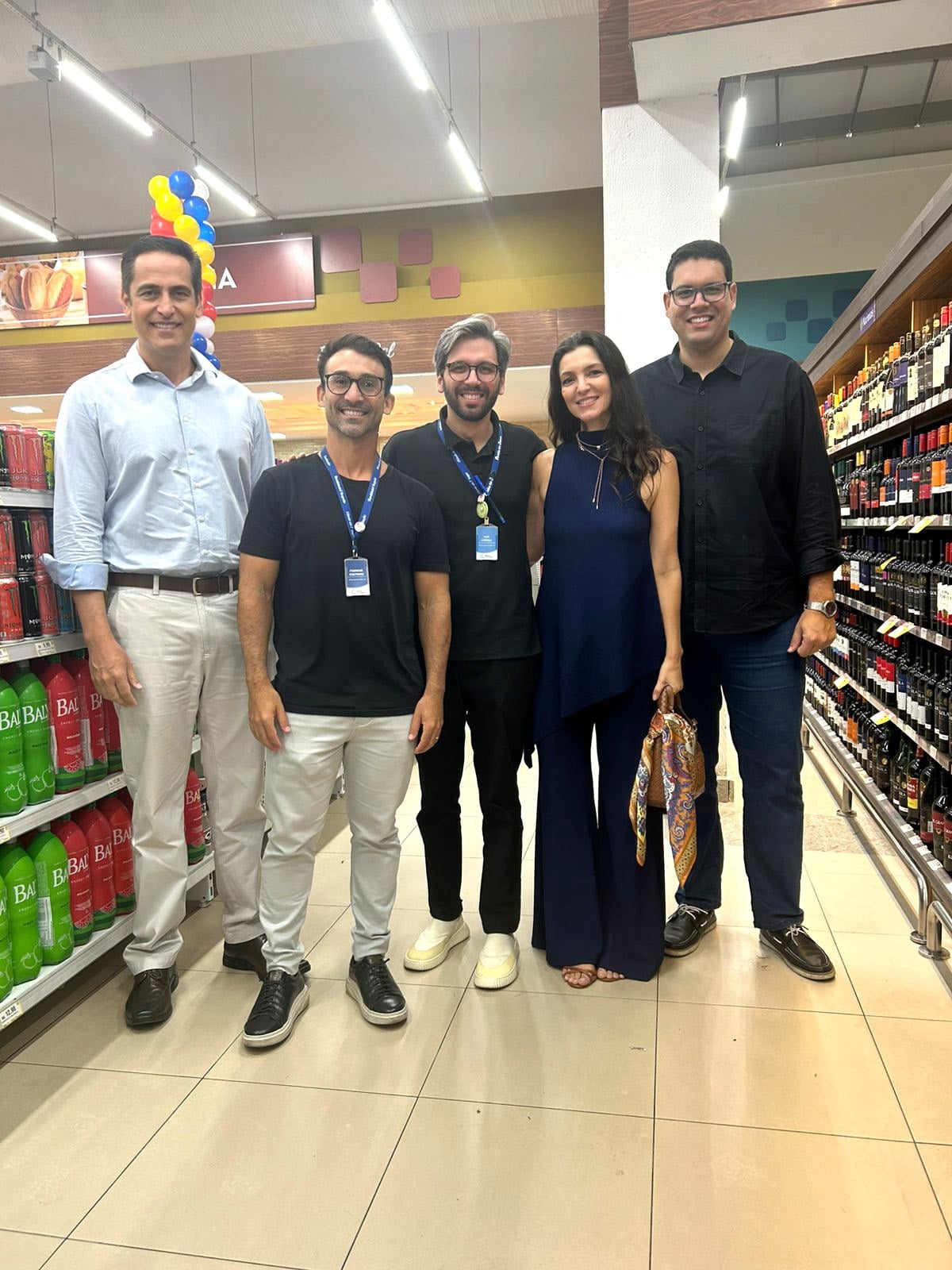 Presença da Rede Vitória na reinauguração do Extrabom Anchieta. Na foto: Davi Wescley, Fabricio Coutinho, Yuri Correa, Alyne Furieri e Pedro Henrique Rezende.